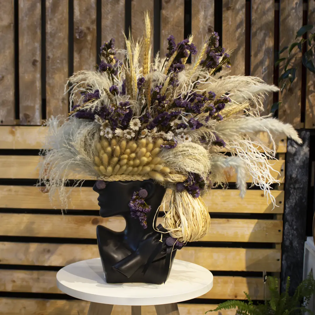 If you’re looking for a unique and beautiful way to bring the beauty of nature into your life, the Oriental Grace dried flower arrangement with the female face is a perfect choice. This bouquet will surely leave a lasting impression on anyone who sees it.
